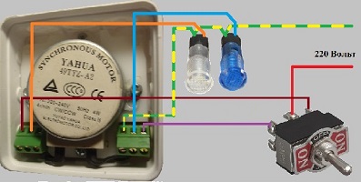 Если необходимо знать в каком положении находится заслонка, то можно добавить в схему одну или две индикаторные лампы. Лампы загораются только в случае когда электромотор не работает а заслонка открыта или закрыта
