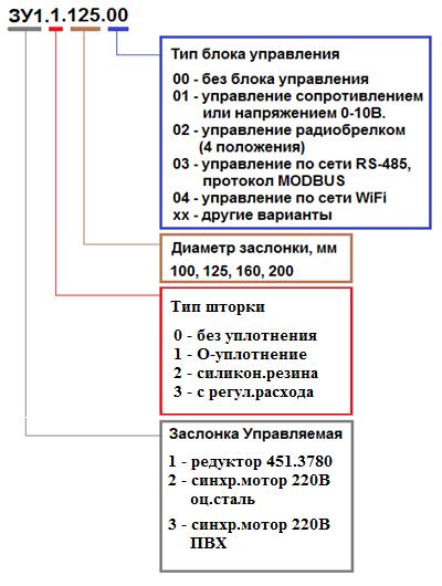 Заслонки ЗУ3 выпускаются только следующих видов: ЗУ3.0.100.00, ЗУ3.2.100.00, ЗУ3.3.100.00